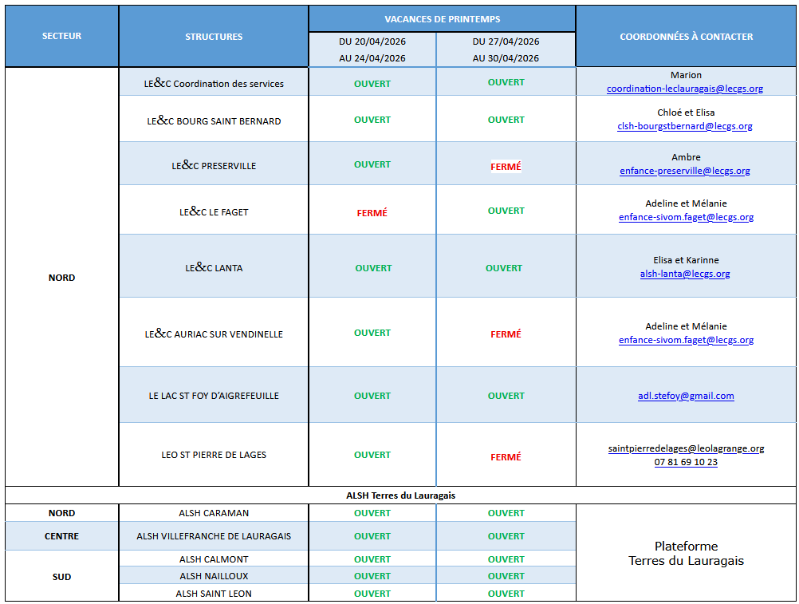 Les programmes des activités des vacances sont en cours d’élaboration et seront disponible dans les prochains jours sur notre site internet : www.terres-du-lauragais.fr ou Sur le padlet