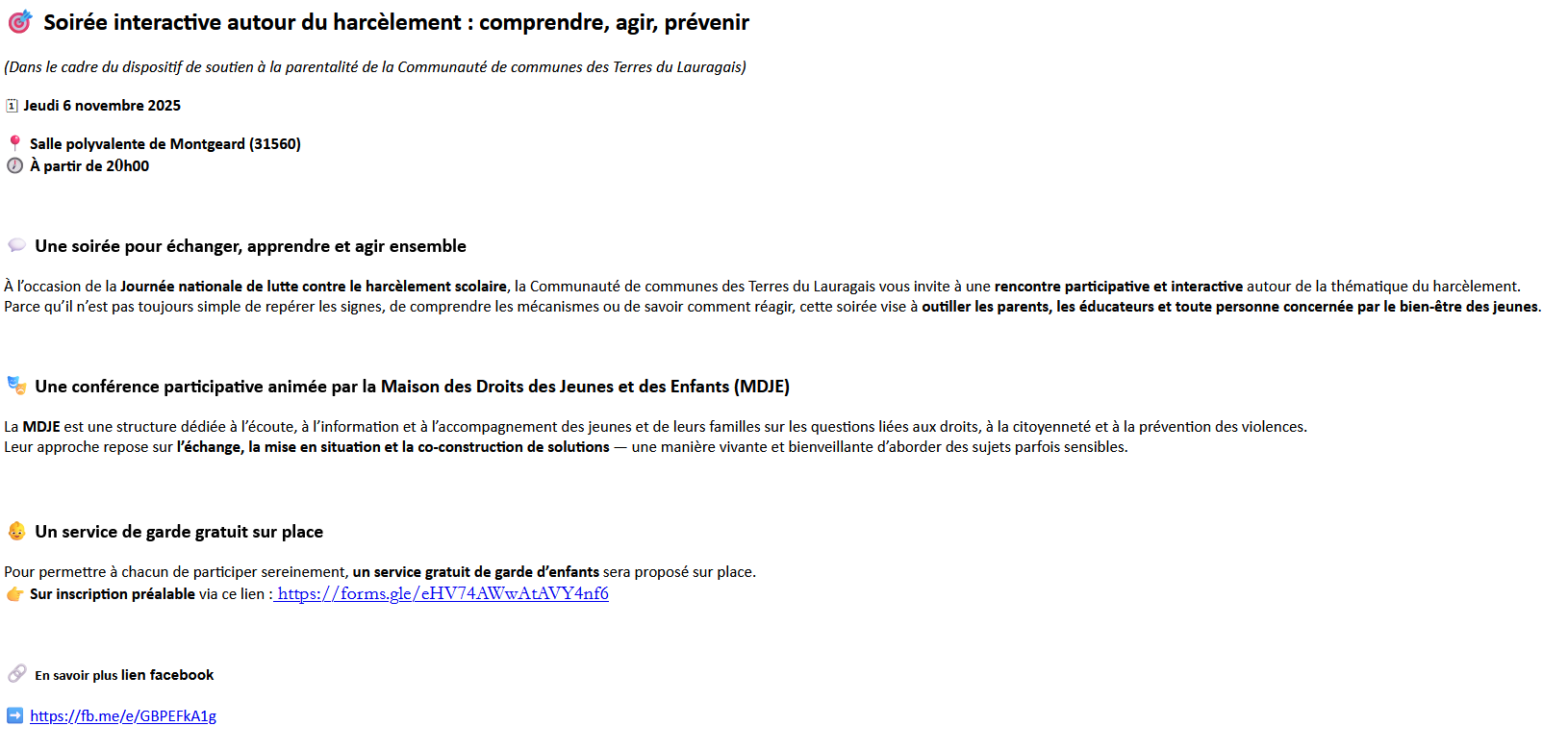 Nous ne manquerons pas de vous tenir informés très prochainement du calendrier pour l’harmonisation des tarifs pour les mercredis après-midi après l’école.